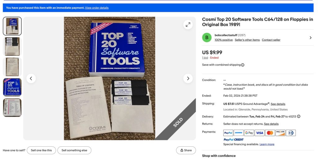 I found one complete set of the Top 20 Software Tools disks and I pulled the trigger immediately (as if others were clamoring to own this and if I didnt act RIGHT NOW I’d lose out)
